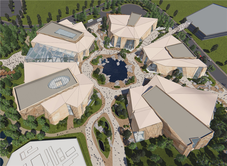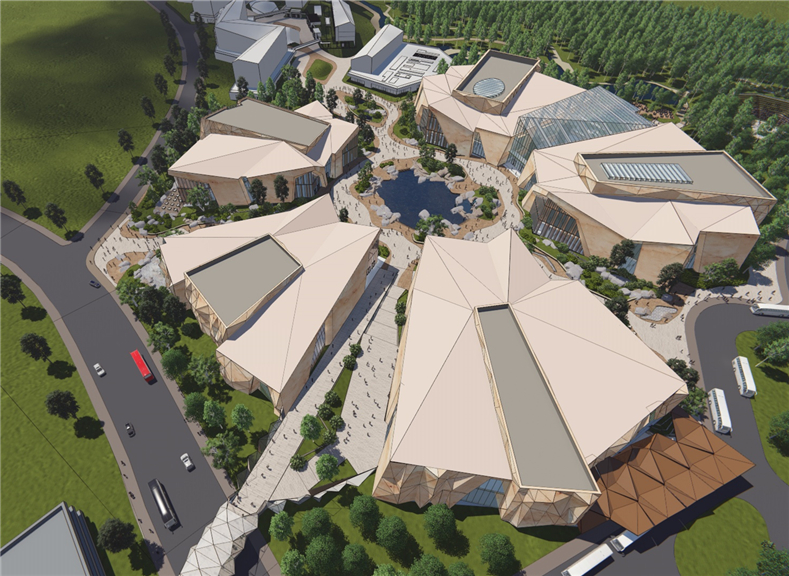 工程概況:本項目總用地面積約12公頃,總建筑面積約159896平米,主要功能為訪客中心,博物館,溫室花園,飛行劇院,晚餐秀,零售,餐飲,電影院室內體育中心,音樂中心,水療中心等。