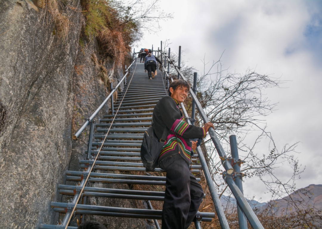 ▲四川分行支持的“懸崖村”鋼梯修建項目