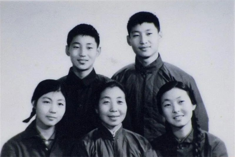 1972年冬,齊心和子女們。前排右起:齊橋橋、齊心、習安安。后排右起:習近平、習遠平。