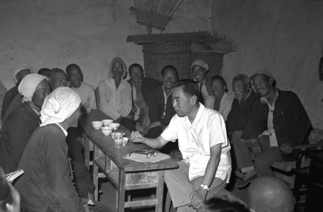 1961年,周恩來同河北磁縣農(nóng)民一起座談。 新華社發(fā)