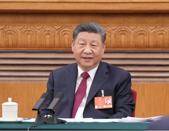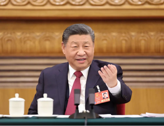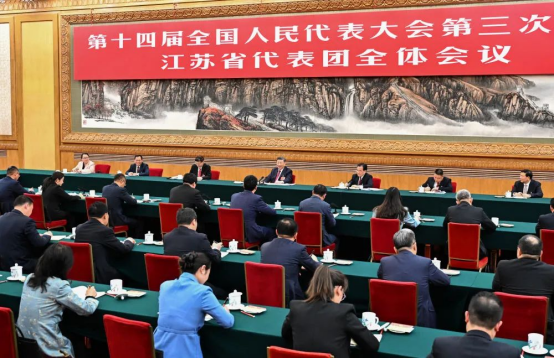 3月5日下午,中共中央總書記、國家主席、中央軍委主席習近平參加他所在的十四屆全國人大三次會議江蘇代表團審議。新華社發(fā)(占政 攝)