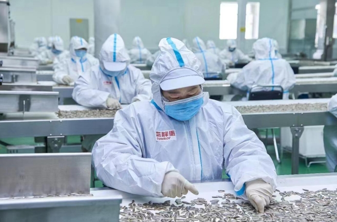 ▲三胖蛋公司生產(chǎn)線層層嚴格篩選瓜子
