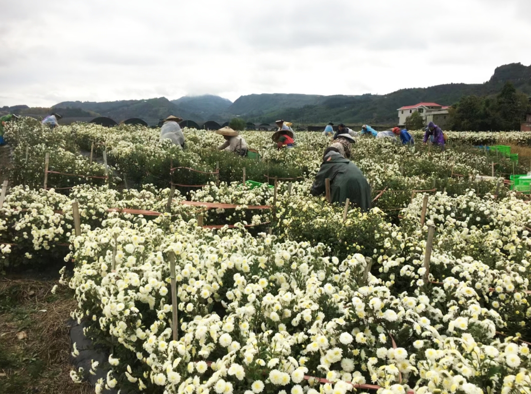 ▲貴定縣500畝壩區(qū)產(chǎn)業(yè)結(jié)構(gòu)調(diào)整項(xiàng)目菊花種植現(xiàn)場(chǎng)