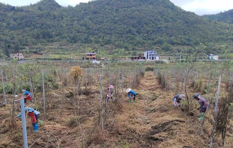 三原公司承建的長(zhǎng)順縣農(nóng)村產(chǎn)業(yè)融合發(fā)展示范園內(nèi),農(nóng)戶們正在蘋(píng)果園忙著修剪、澆水、施肥、覆膜、噴藥,除草機(jī)的轟鳴聲相互交織,一派繁忙景象。