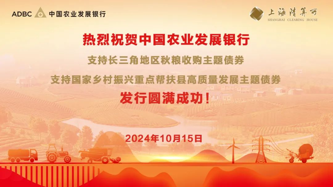 10月15日,中國(guó)農(nóng)業(yè)發(fā)展銀行在上海清算所以公開(kāi)招標(biāo)方式,面向境內(nèi)外投資者成功發(fā)行2年期支持長(zhǎng)三角地區(qū)秋糧收購(gòu)主題債券40億元,發(fā)行利率1.6508%;7年期支持國(guó)家鄉(xiāng)村振興重點(diǎn)幫扶縣高質(zhì)量發(fā)展主題債券40億元,發(fā)行利率2.0545%。本次發(fā)行受到了南京銀行、工商銀行、江西銀行、九江銀行、江蘇銀行等機(jī)構(gòu)的大力支持。
