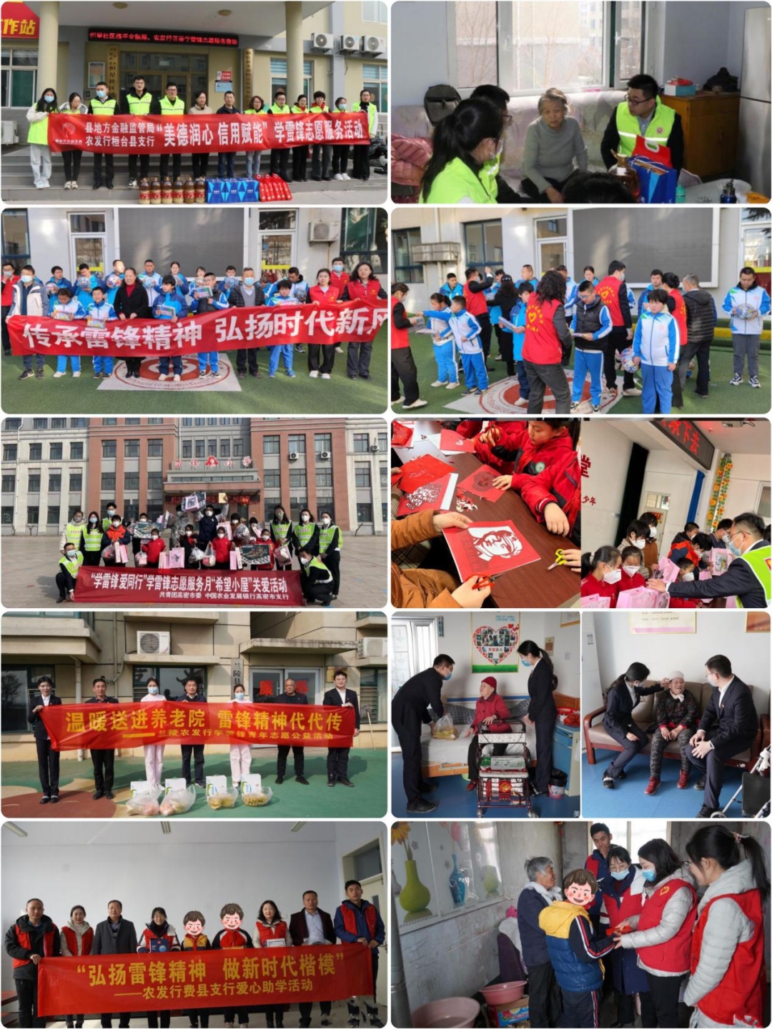 以3月5日“學(xué)雷鋒紀(jì)念日”為契機(jī),每年組織青年志愿者結(jié)合自身實(shí)際開(kāi)展形式多樣、各具特色的學(xué)雷鋒志愿公益活動(dòng)。組織開(kāi)展“喜迎建團(tuán)百年·學(xué)雷鋒講奉獻(xiàn)”主題學(xué)雷鋒志愿公益活動(dòng),全系統(tǒng)1.3萬(wàn)余名團(tuán)員青年參與其中,活動(dòng)時(shí)長(zhǎng)達(dá)1萬(wàn)余小時(shí)。組織青年志愿者走進(jìn)社區(qū)向居民發(fā)放金融知識(shí)小折頁(yè),宣講防詐知識(shí);送金融知識(shí)進(jìn)企業(yè),助力有效解決企業(yè)在辦理業(yè)務(wù)中遇到的難題;關(guān)愛(ài)“一老一小”,提升特殊群體的幸福感、獲得感,弘揚(yáng)中華民族傳統(tǒng)美德;動(dòng)員無(wú)償獻(xiàn)血,為愛(ài)心事業(yè)注入新鮮血液,傳遞農(nóng)發(fā)行青年的溫暖。在“農(nóng)發(fā)e家”公眾號(hào)開(kāi)設(shè)“3·5學(xué)雷鋒”專欄,宣傳農(nóng)發(fā)行青年志愿者積極參與志愿服務(wù),投身社會(huì)文明建設(shè),促進(jìn)文明實(shí)踐的生動(dòng)事跡。