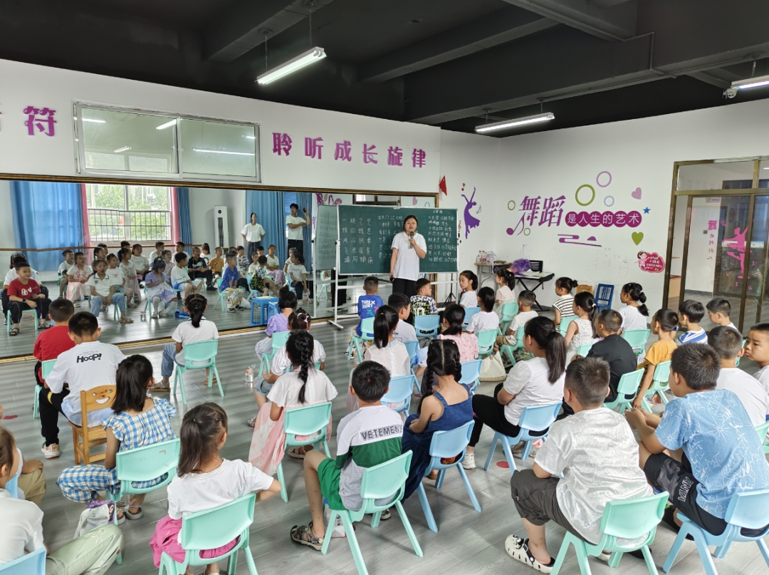 ▲陜西科技大學(xué)與農(nóng)發(fā)行陜西分行青年志愿者在當(dāng)?shù)貎和议_展暑期教學(xué)活動(dòng)