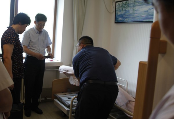 修龍董事長和孫英副總裁認(rèn)真地考察體驗(yàn)了項(xiàng)目適老化設(shè)計(jì)細(xì)節(jié)、設(shè)施配置、部品應(yīng)用等情況,并與大家深入座談。孫英副總裁認(rèn)為,亞運(yùn)村養(yǎng)老設(shè)施項(xiàng)目是對(duì)住區(qū)原有建筑空間的開發(fā)再利用,更是創(chuàng)建城市復(fù)合介護(hù)型養(yǎng)老設(shè)施的新模式,為城市既有住區(qū)注入了可持續(xù)發(fā)展的活力。面對(duì)當(dāng)下中國人口老齡化程度日益加深的現(xiàn)狀和優(yōu)質(zhì)醫(yī)療養(yǎng)護(hù)服務(wù)的需求不斷增加的挑戰(zhàn),首開寸草養(yǎng)老項(xiàng)目的模式是集團(tuán)積極探索適合中國國情的適老化建設(shè)和適老化服務(wù)道路的有力實(shí)踐。