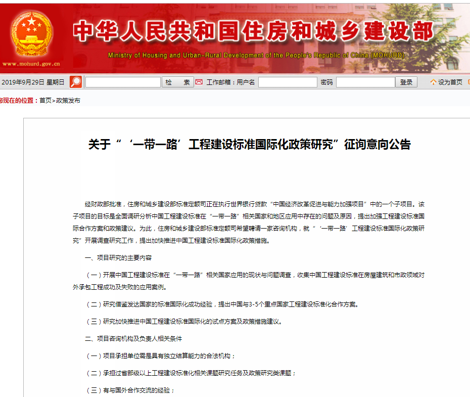 近日,標準院成功中標中國經(jīng)濟改革促進與能力加強項目(TCC6)子項目“‘一帶一路’工程建設(shè)標準國際化政策研究”。該項目是經(jīng)財政部批準的世界銀行貸款項目,也是住房和城鄉(xiāng)建設(shè)部標準定額司第一次公開向全社會征詢意向的標準國際化招標項目。該項目的目標是全面調(diào)研分析中國工程建設(shè)標準在“一帶一路”相關(guān)國家和地區(qū)應(yīng)用中存在的問題及原因,提出加強工程建設(shè)標準國際合作方案和政策建議。就“一帶一路”工程建設(shè)標準國際化政策研究開展調(diào)查研究工作,提出加快推進中國工程建設(shè)標準國際化政策措施。