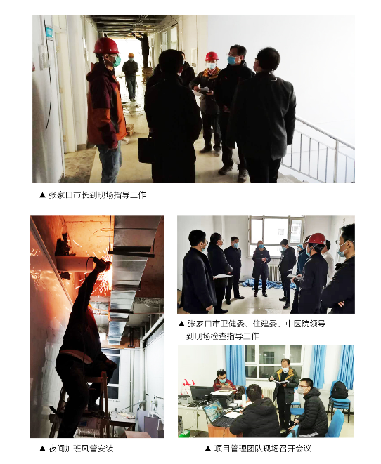 為了應(yīng)對(duì)2020年新型冠狀肺炎的嚴(yán)重疫情,奧運(yùn)城市張家口市政府按照中央“堅(jiān)定信心 同舟共濟(jì) 科學(xué)防治 精準(zhǔn)施策”的決策部署決定將張家口市中醫(yī)院“社區(qū)衛(wèi)生服務(wù)中心”迅速改造為“疫情預(yù)備治療中心”,以滿足收治確診新冠狀病毒病人住院的需求。本項(xiàng)目時(shí)間緊、任務(wù)重、責(zé)任大,為按時(shí)保質(zhì)完成任務(wù),醫(yī)院決定采用設(shè)計(jì)牽頭的EPC工程總承包模式進(jìn)行實(shí)施。項(xiàng)目在總體工期只有十天的情況下,無(wú)論是EPC工程總承包中的設(shè)計(jì)團(tuán)隊(duì),還是項(xiàng)目管理團(tuán)隊(duì)和現(xiàn)場(chǎng)施工作業(yè)團(tuán)隊(duì)都實(shí)施24小時(shí)不間斷工作!總承包團(tuán)隊(duì)在研究及學(xué)習(xí)相關(guān)資料文件加緊設(shè)計(jì)的同時(shí),依據(jù)能緊急采購(gòu)到的設(shè)備,結(jié)合現(xiàn)場(chǎng)情況反復(fù)研究最佳方案,設(shè)計(jì)與施工一體化精細(xì)配合,施工團(tuán)隊(duì)高效組織施工,改造工程最終如期竣工,為張家口市的新冠肺炎抗疫工作發(fā)揮了重大保障作用,為冬奧會(huì)的順利籌備保駕護(hù)航!
