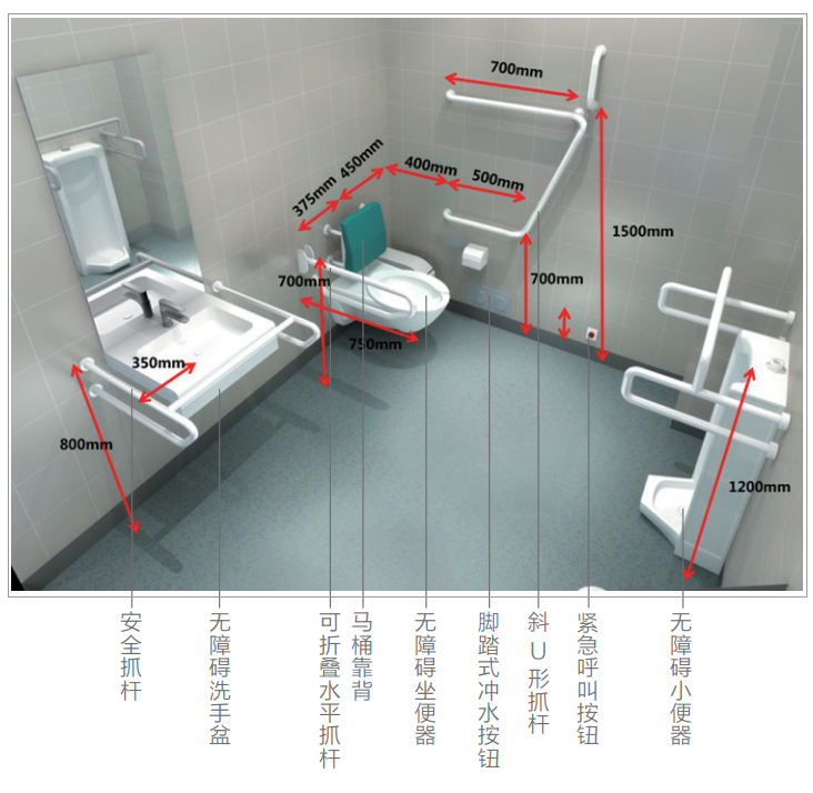 衛(wèi)生間依使用者的人體形態(tài)、行為方式及操作習(xí)慣,提供方便起身、移動和施力的空間布局及設(shè)施。