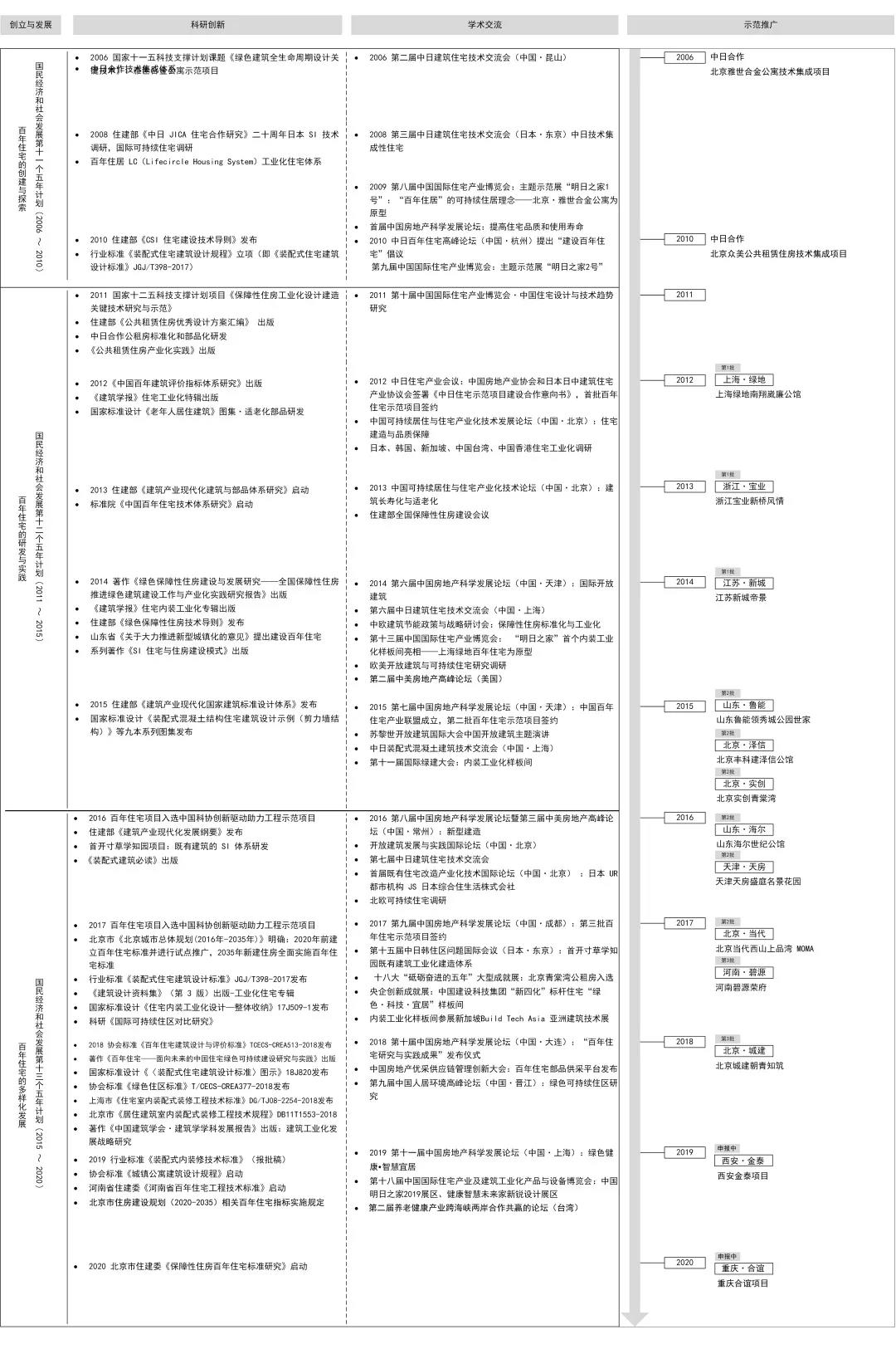 2010 年,在中日百年住宅國際高峰論壇上,中國房地產(chǎn)業(yè)協(xié)會向全社會、全行業(yè)發(fā)起了《建設(shè)百年住宅的倡議》。2012 年5月18 日,中國房地產(chǎn)業(yè)協(xié)會和日本日中建筑住宅產(chǎn)業(yè)協(xié)議會共同簽署了《中日住宅示范項目建設(shè)合作意向書》,就促進中日兩國在住宅建設(shè)領(lǐng)域進一步深化交流、合作開發(fā)示范項目等達成一致意見,提出建設(shè)以建筑產(chǎn)業(yè)化生產(chǎn)方式建設(shè)的長壽化、高品質(zhì)、低能耗的中國百年住宅Long-Life Sustainable Housing 新型產(chǎn)品。項目實施委托中國建設(shè)科技集團股份有限公司(集團)的中國建筑標準設(shè)計研究院有限公司負責示范項目的組織管理、技術(shù)研發(fā)和設(shè)計實施工作,并簽約開展了第一批示范項目。2014年第一個百年住宅示范項目上海綠地南翔崴廉公館竣工,引起了全行業(yè)和社會的廣泛好評。2015年第二批、2017年第三批示范項目陸續(xù)簽約或建成;截至2019 年底,全國示范項目總建筑面積已達百余萬平方米。