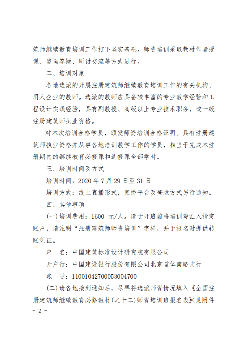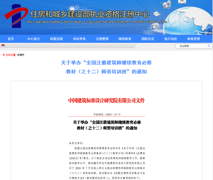 根據(jù)全國(guó)注冊(cè)建筑師管理委員會(huì)秘書處《關(guān)于印發(fā)〈全國(guó)注冊(cè)建筑師繼續(xù)教育必修教材(之十二)教學(xué)計(jì)劃〉的通知》(注建秘[2020]2號(hào))要求,為了規(guī)范各地注冊(cè)建筑師繼續(xù)教育工作,提高培訓(xùn)教學(xué)水平,教材編寫單位中國(guó)建筑標(biāo)準(zhǔn)設(shè)計(jì)研究院有限公司定于2020年7月在線上舉辦全國(guó)注冊(cè)建筑師繼續(xù)教育必修教材(之十二)師資培訓(xùn)班(中標(biāo)研發(fā)[2020]141號(hào)),培訓(xùn)教材為《裝配式建筑系統(tǒng)集成與設(shè)計(jì)建造法》。師資培訓(xùn)采取教材作者授課、咨詢答疑、研討交流等方式進(jìn)行。