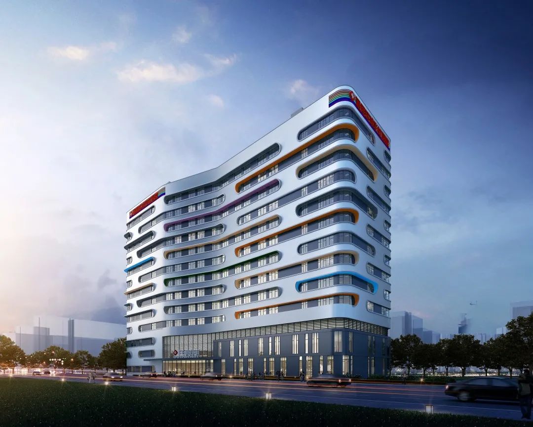 醫(yī)院設(shè)計(jì)以婦兒醫(yī)療功能為特色,以三級(jí)甲等專(zhuān)科醫(yī)院為目標(biāo),在與老院區(qū)做到自然融合的同時(shí),也為未來(lái)的擴(kuò)展做了充分的合理準(zhǔn)備。醫(yī)院在無(wú)障礙設(shè)計(jì)等方面體現(xiàn)出無(wú)微不至的人文關(guān)懷,建筑立面以柔美的曲線、躍動(dòng)的色彩表現(xiàn)彩虹醫(yī)院的獨(dú)特氣質(zhì),提升住院大樓在城市中的標(biāo)志性。