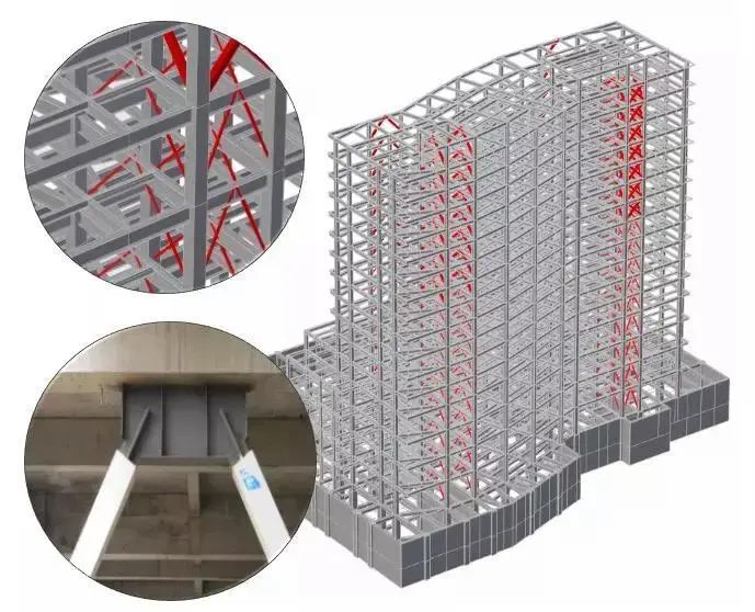結(jié)構(gòu)系統(tǒng)采用鋼結(jié)構(gòu)體系,材料性能好,標(biāo)準(zhǔn)化程度高,施工周期短。較之傳統(tǒng)的支撐結(jié)構(gòu),減震構(gòu)件表現(xiàn)出優(yōu)良的耗能能力。延長(zhǎng)建筑壽命,保證醫(yī)院安全,體現(xiàn)可持續(xù)和人性化的重要技術(shù)措施。