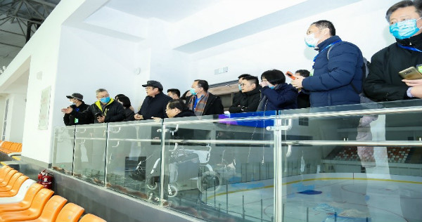 參會嘉賓現(xiàn)場體驗冰球館內(nèi)的無障礙看臺