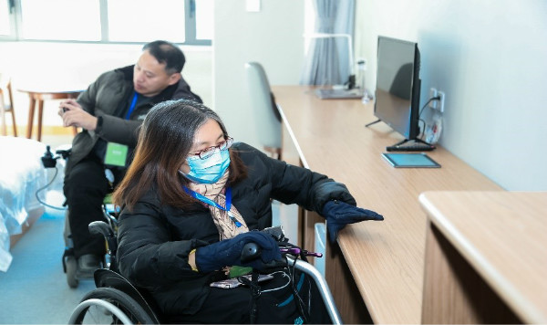 參會殘疾人代表現(xiàn)場體驗運動員公寓房間內(nèi)無障礙設(shè)計和設(shè)施