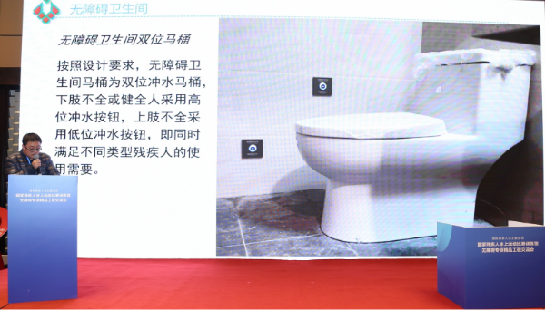 標(biāo)準(zhǔn)院總經(jīng)理曹彬向與會領(lǐng)導(dǎo)嘉賓無障礙方面的情況