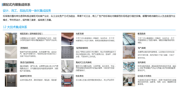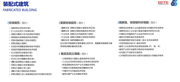 在裝配式建筑領(lǐng)域,標(biāo)準(zhǔn)院承接數(shù)十項(xiàng)國(guó)家級(jí)、省部級(jí)科研課題,主編裝配式建筑領(lǐng)域十余項(xiàng)標(biāo)準(zhǔn)規(guī)范,研發(fā)和編制裝配式建筑系列國(guó)家建筑標(biāo)準(zhǔn)設(shè)計(jì),承接住建部裝配式建筑標(biāo)準(zhǔn)體系宣貫和培訓(xùn)任務(wù),打造了一流專家團(tuán)隊(duì),建立了建筑設(shè)計(jì)、工程項(xiàng)目管理,內(nèi)裝施工、部品應(yīng)用一體化產(chǎn)業(yè)鏈,推出了PC、鋼結(jié)構(gòu)和裝配式內(nèi)裝三大服務(wù)體系和中國(guó)百年住宅集成產(chǎn)品。