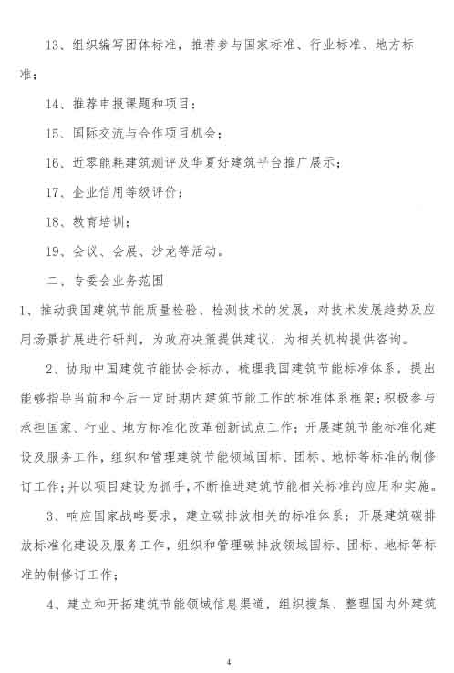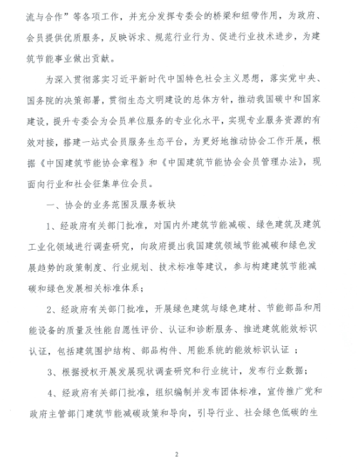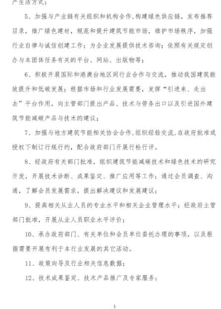 4、經(jīng)政府有關(guān)部門批準(zhǔn),組織編制并發(fā)布團(tuán)體標(biāo)準(zhǔn),宣傳推廣黨和政府主管部門建筑節(jié)能減碳政策和導(dǎo)向,引導(dǎo)行業(yè)、社會(huì)綠色低碳的生產(chǎn)生活方式;