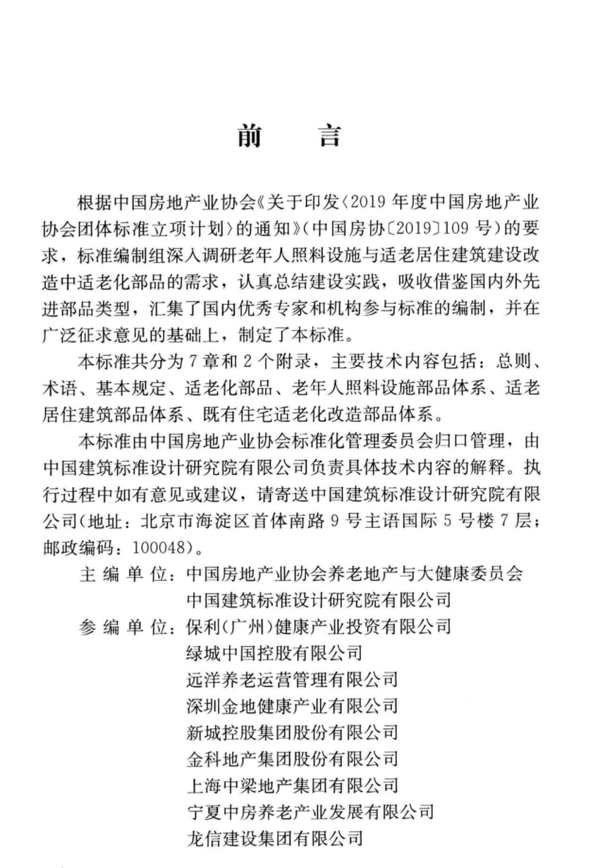 為積極應(yīng)對(duì)人口老齡化,建立健全與十四五規(guī)劃和2035年遠(yuǎn)景目標(biāo)綱要提出的“支撐家庭承擔(dān)養(yǎng)老功能,構(gòu)建居家社區(qū)機(jī)構(gòu)相協(xié)調(diào)、醫(yī)養(yǎng)康養(yǎng)相結(jié)合的養(yǎng)老服務(wù)體系”相適應(yīng)的適老部品體系,針對(duì)當(dāng)前適老部品體系缺失,適老部品質(zhì)量參差不齊,智能化、精細(xì)化程度不夠等實(shí)際問題,由中國建筑標(biāo)準(zhǔn)設(shè)計(jì)研究院有限公司劉東衛(wèi)總建筑師牽頭,聯(lián)合中國房地產(chǎn)業(yè)協(xié)會(huì)、保利、綠城、遠(yuǎn)洋、金地、新城、金科、中梁、寧夏中房、龍信、德源、陽光城等企業(yè),在廣泛項(xiàng)目調(diào)研和成功實(shí)踐的基礎(chǔ)上,共同編制了《老年人照料設(shè)施與適老居住建筑部品體系標(biāo)準(zhǔn)》(以下簡稱“《標(biāo)準(zhǔn)》”),并于2021年9月1日發(fā)布實(shí)施。