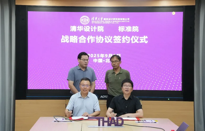 2025年9月2日下午,中國(guó)建筑標(biāo)準(zhǔn)設(shè)計(jì)研究院有限公司(以下簡(jiǎn)稱“標(biāo)準(zhǔn)院”)黨委副書記、總經(jīng)理韓高峰,黨委副書記、副總經(jīng)理羅文斌與清華大學(xué)建筑設(shè)計(jì)研究院有限公司(以下簡(jiǎn)稱“清華設(shè)計(jì)院”)院長(zhǎng)、總建筑師任飛,副院長(zhǎng)、副總建筑師唐鴻駿在清華大學(xué)設(shè)計(jì)中心樓舜德廳舉行戰(zhàn)略合作對(duì)接會(huì)并正式簽署戰(zhàn)略合作協(xié)議。此次合作旨在整合雙方優(yōu)勢(shì)資源,聚焦科研創(chuàng)新、標(biāo)準(zhǔn)制定、企業(yè)管理與項(xiàng)目合作等多個(gè)維度,共同提升設(shè)計(jì)服務(wù)水平與行業(yè)技術(shù)實(shí)踐能力。